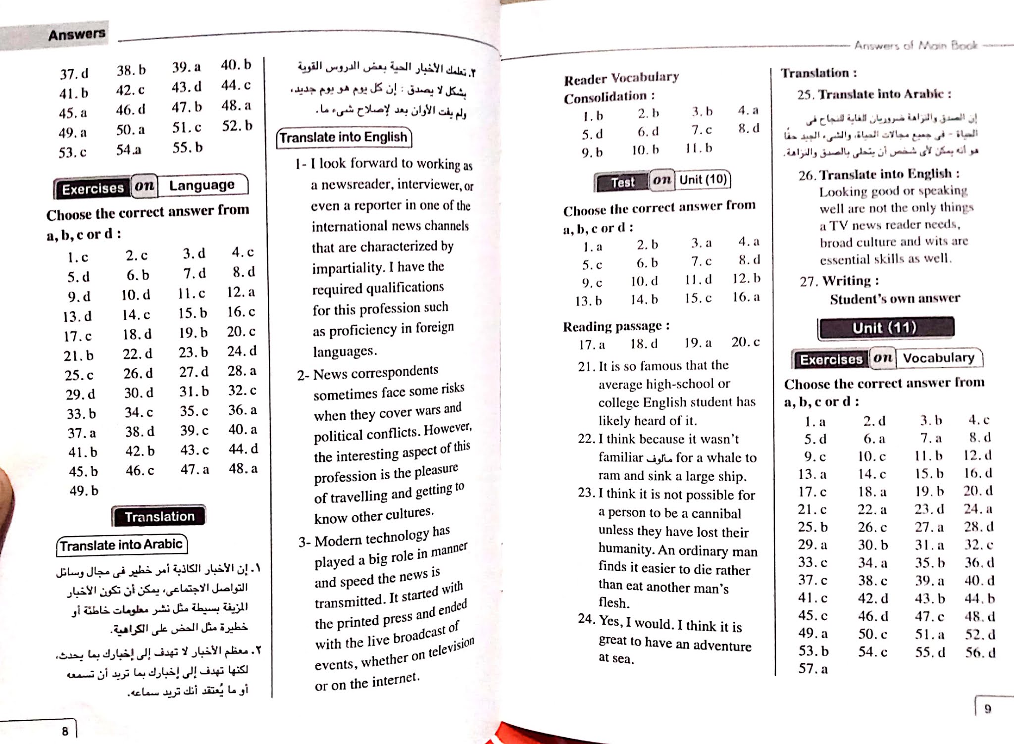 اجابات كتاب المعاصر الصف الثانى الثانوى الترم التانى 2021