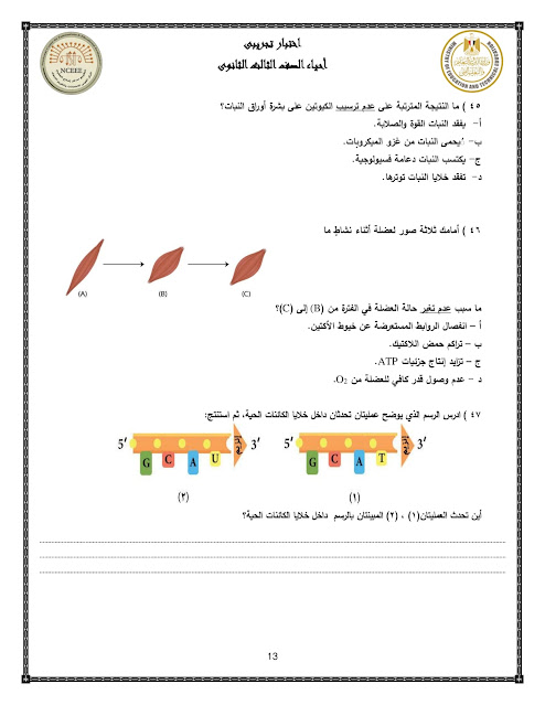 نموذج الوزارة الاسترشادى فى مادة الأحياء للصف الثالث الثانوي 2023