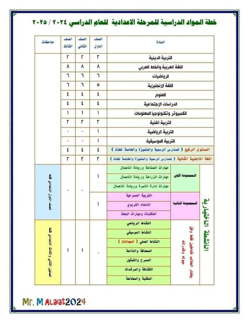 ثانيا: المواد المقررة على الصف الثاني الإعدادي:
